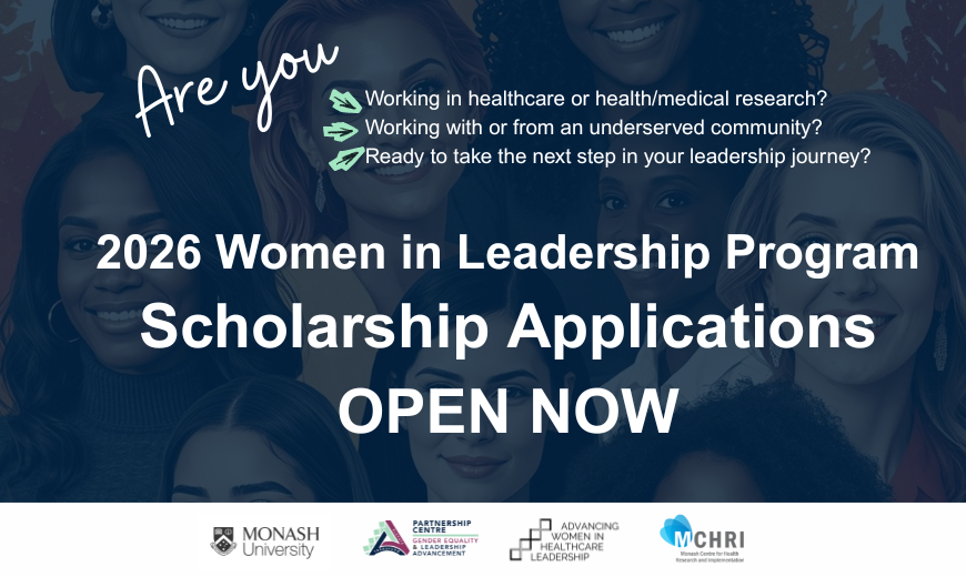 Our 2026 scholarship round is now open! To celebrate International Women’s Day, the NHMRC and partner‑funded Advancing Women in Healthcare Leadership initiative, together with MCHRI, are offering scholarships for women in healthcare and/or health/medical research working with, or from, underserved communities. Recipients will attend the Monash University Women in Leadership Program for just $550 (usual cost $2178).